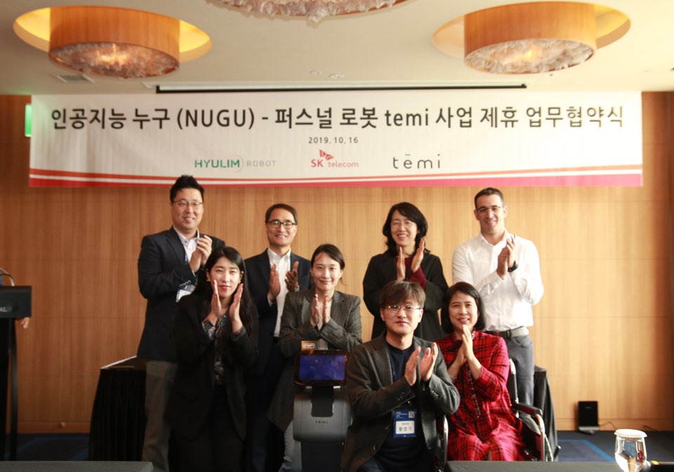 temi联合创始人兼CEO Gal Goren于本月16日与韩国SK电讯签订推进AI机器人事业的业务协议(MOU),随后,在SK电讯主办的“2019 NUGU峰会”上介绍了集AI、自主导航、远程移动视频等尖端技术于一体的temi机器人,并演示了temi诸多服务功能,宣布与NUGU牵手,与SK电讯旗下的Hyulim机器人公司合作,正式进入韩国市场!